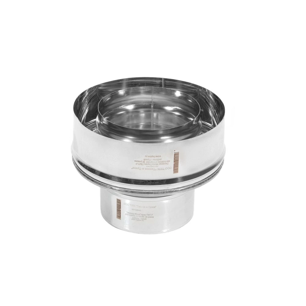 Переход Моно-Термо предназначен для перехода с неутепленного дымового канала Моно на утепленный Термо. Переход Моно-Термо является стартовым элементом для утепленного дымохода Термо, изолирует утеплитель трубы Термо.