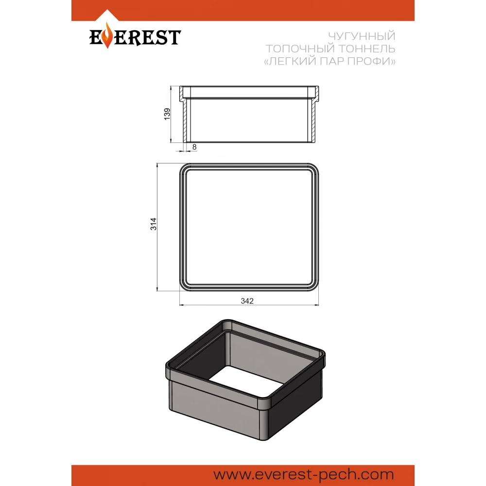 Технические характеристики Чугунный топочный туннель "Легкий пар Профи"
