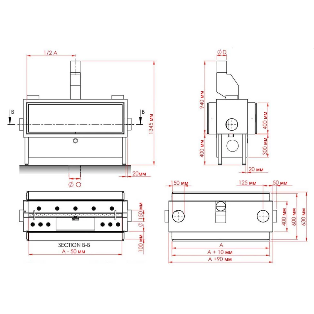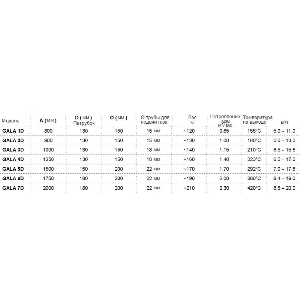 | Модель | Ø дымохода | ШхВхГ |