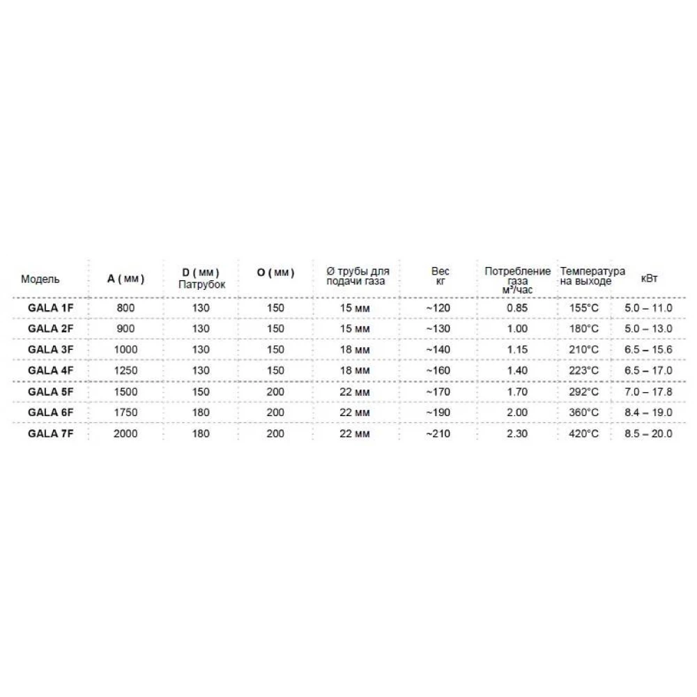 Технические характеристики Газовая топка VERO-DESIGN Gala GA 8 F
