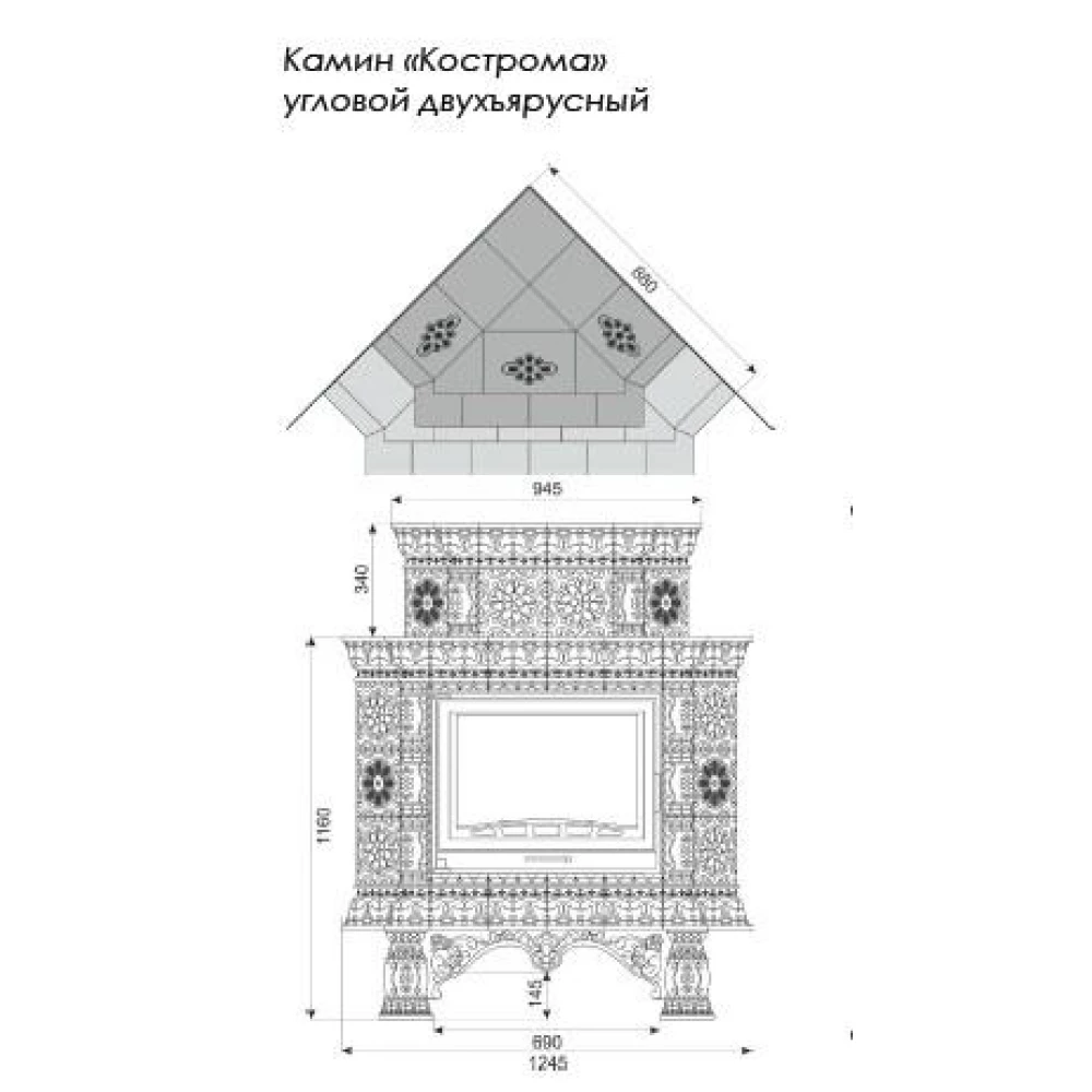Технические характеристики Каминная облицовка КИМРПЕЧЬ Кострома угловой двухъярусный