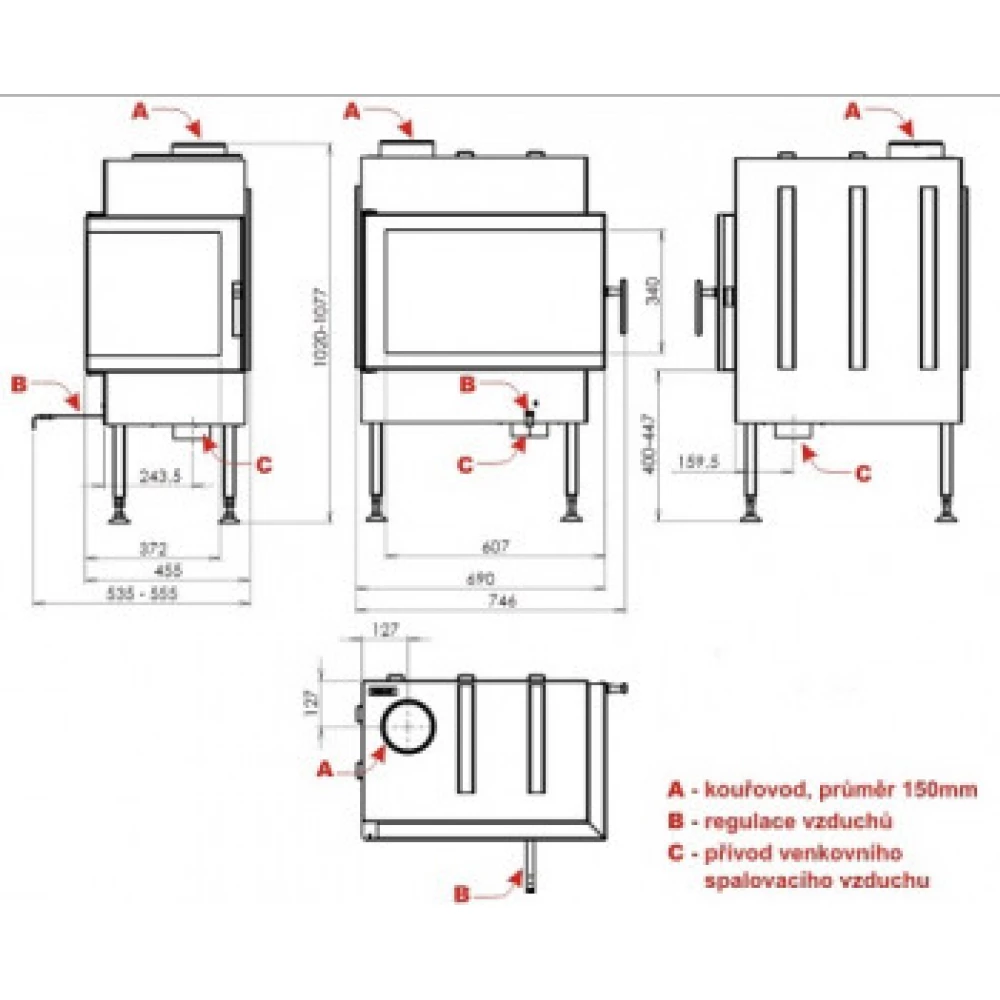 Топка Cardiff имеет два варианта исполнения правая и левая. В топке установлено цельное гнутое стекло, которое максимально увеличивает обзор огня. Приток воздуха, который есть в комплектации, позволит не выжигать кислород из помещения. Внутри топка футерована вермикулитом, этот материал совместно с подовым горением, позволяет максимально эффективно сжигать дрова. Дымоход 150 диаметра, позволяет подключиться почти к любому из существующих дымоходов. Высокие ножки с регулировкой по уровню, помогут при монтаже.