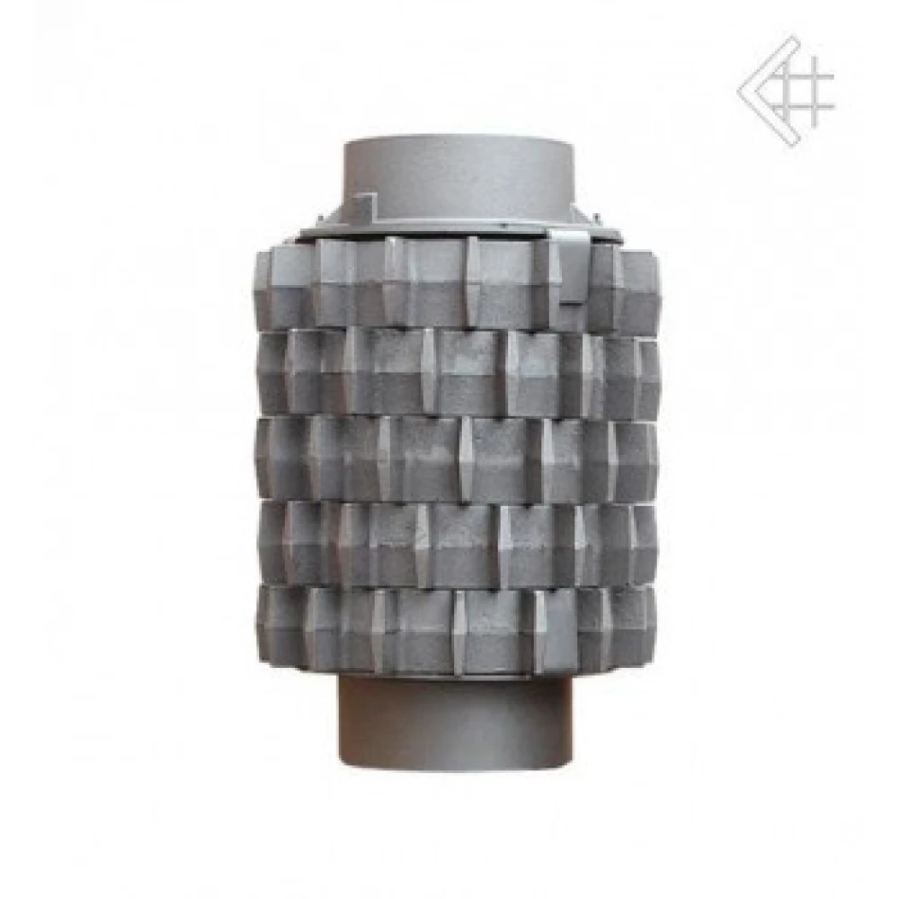 Комплект таких дисков, поставленных друг на друга в шахматном порядке и укрепленных на вертикальном патрубке камина, удлиняет путь дымовых газов, выходящих из топочной камеры. Дым в этом случае идет к дымоходу по спирали. Кроме того, такая дисковая система хорошо удерживает тепло, благодаря ребристости корпуса.