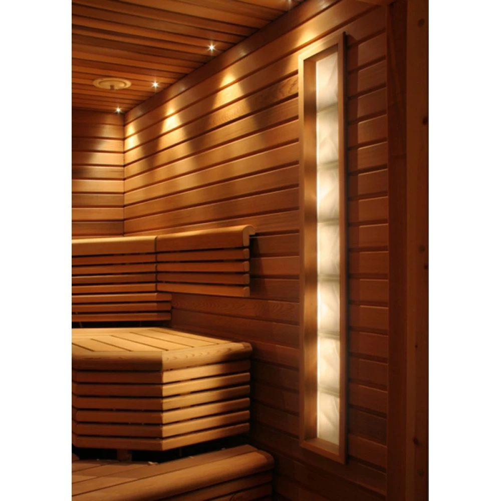 Комплект отлично подходит для освещения саун крупного размера. Площадь сауны - 5-10 м². Волокна - стеклянные, выдерживают температуру до 180°C (допускается установка в потолке сауны). Проектор типа VPL20 со степенью защиты IP20 должен размещаться в сухом помещении. Источником света служит светодиод 12 Вт теплого света (3000 К), который имеет высокий индекс Ra (>90). Проектор не имеет вентилятора и поэтому абсолютно бесшумный. Включает блок питания, который допускает регулирование света от напряжения питания. Полный, готовый к установке, комплект, включает проектор, волоконный жгут, стопорные кольца и линзу для подсветки каменки. Диаметр волокна 3 мм, диаметр волокна для каменки 6 мм. Количество и длина волокон: 2 x 2,0 м 3 x 3,0 м 3 x 4,0 м 2 x 5,0 м 1 x 4,0 м (для каменки)