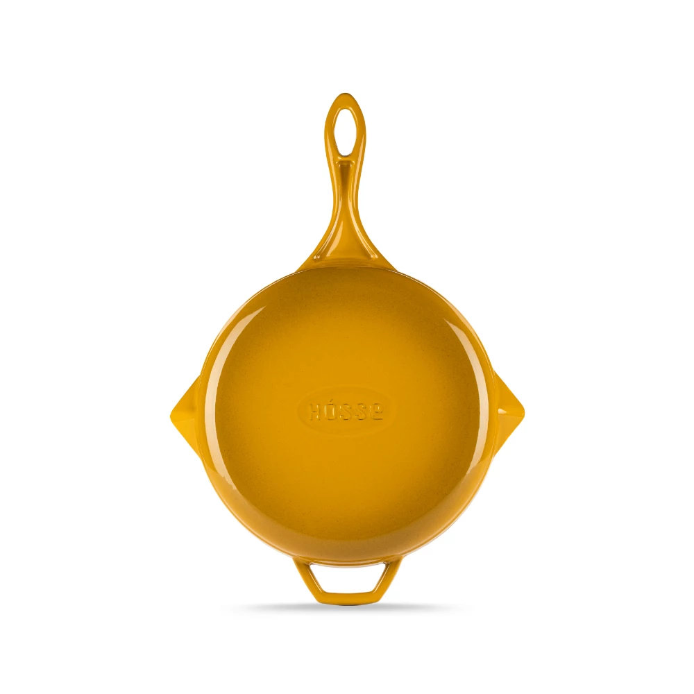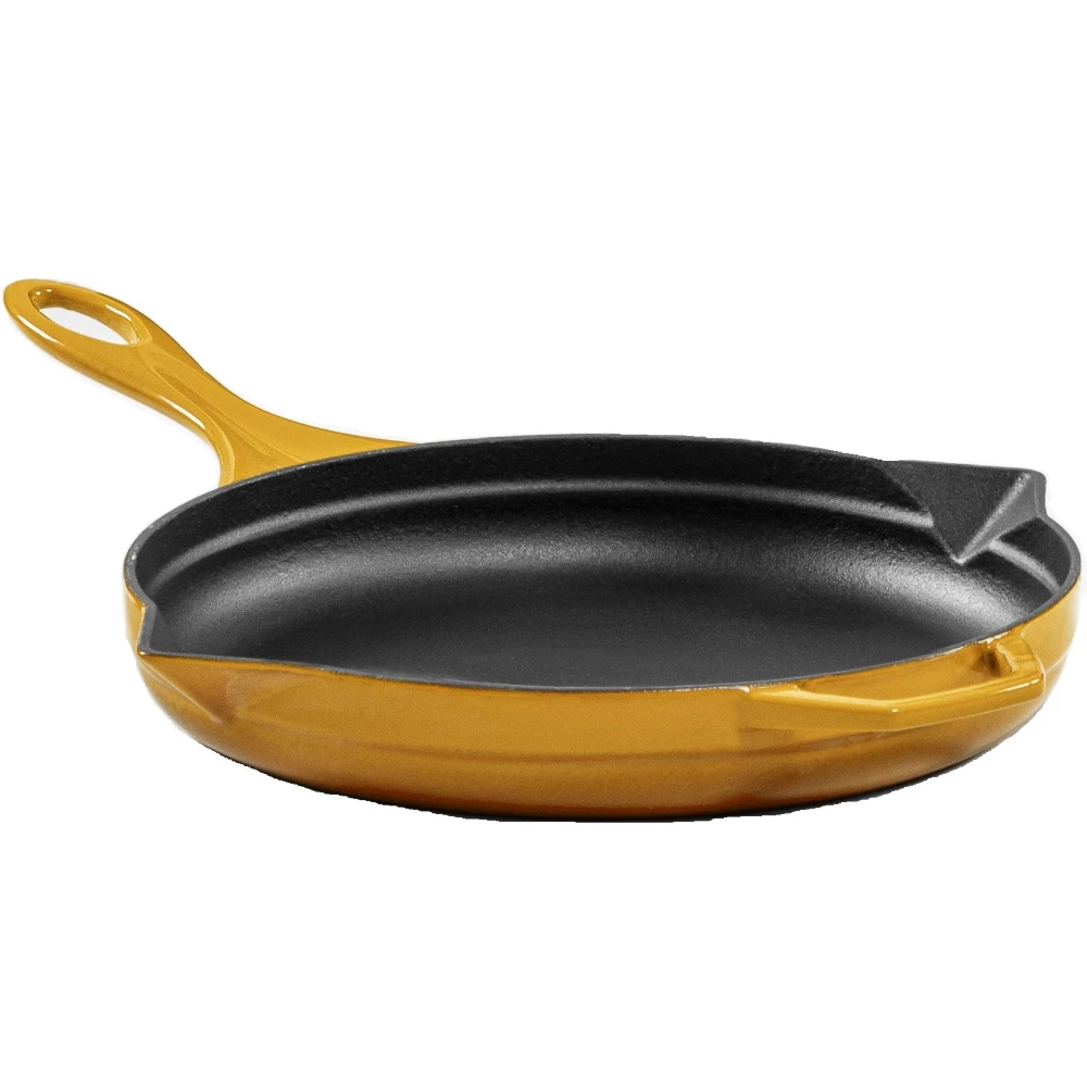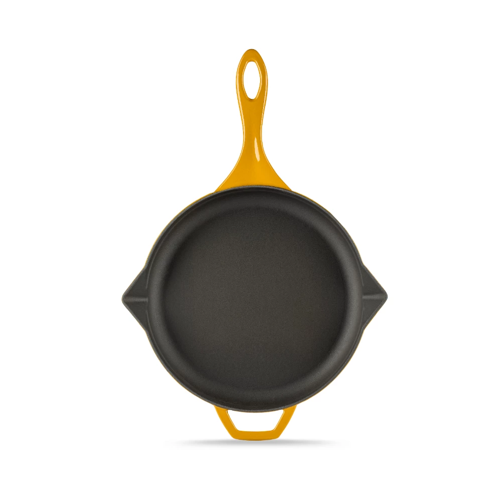 Круглая сковорода для жарки диаметром 28 см идеально подходит для приготовления различных блюд. Трёхслойное эмалевое покрытие обеспечивает надёжную защиту от пригорания и лёгкость ухода. Благодаря двум степеням обжига материала, сковорода обладает высокой прочностью и долговечностью.