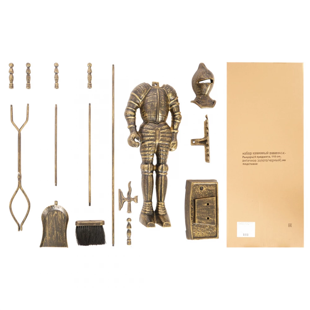 Набор каминный D98051AGK Рыцарь большой (4 предмета, 110 см, античное золото/черный), на подставке