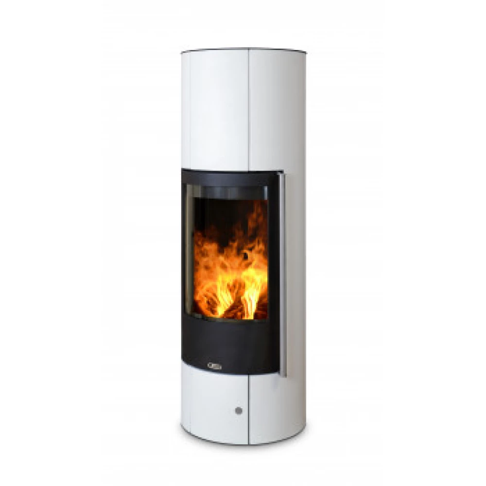 Печь Oregon (Орегон), от Чешского производителя АВХ, за счет своей цилиндрической формы можно установить как в центре комнаты, так и в углу или около стены. Металлический корпус, окрашенный в жемчужно-белый цвет, значительно уменьшает вес печи, по сравнению с кафельной облицовкой, в результате получаем общий вес всего 100 кг и не высокую стоимость. Топка выполнена из высоколегированной стали и футерована вермикулитом, имеет функцию очистки стекла и вторичных дожег дымовых газов. Большая дверца, с панорамным стеклом, позволяет увеличить угол обзора пламени, а металлическая часть двери закрывает зольный отсек с выдвижным ящиком. Внизу печи есть дверца с магнитным замком, которая скрывает две регулировки подачи воздуха первичного и вторичного.