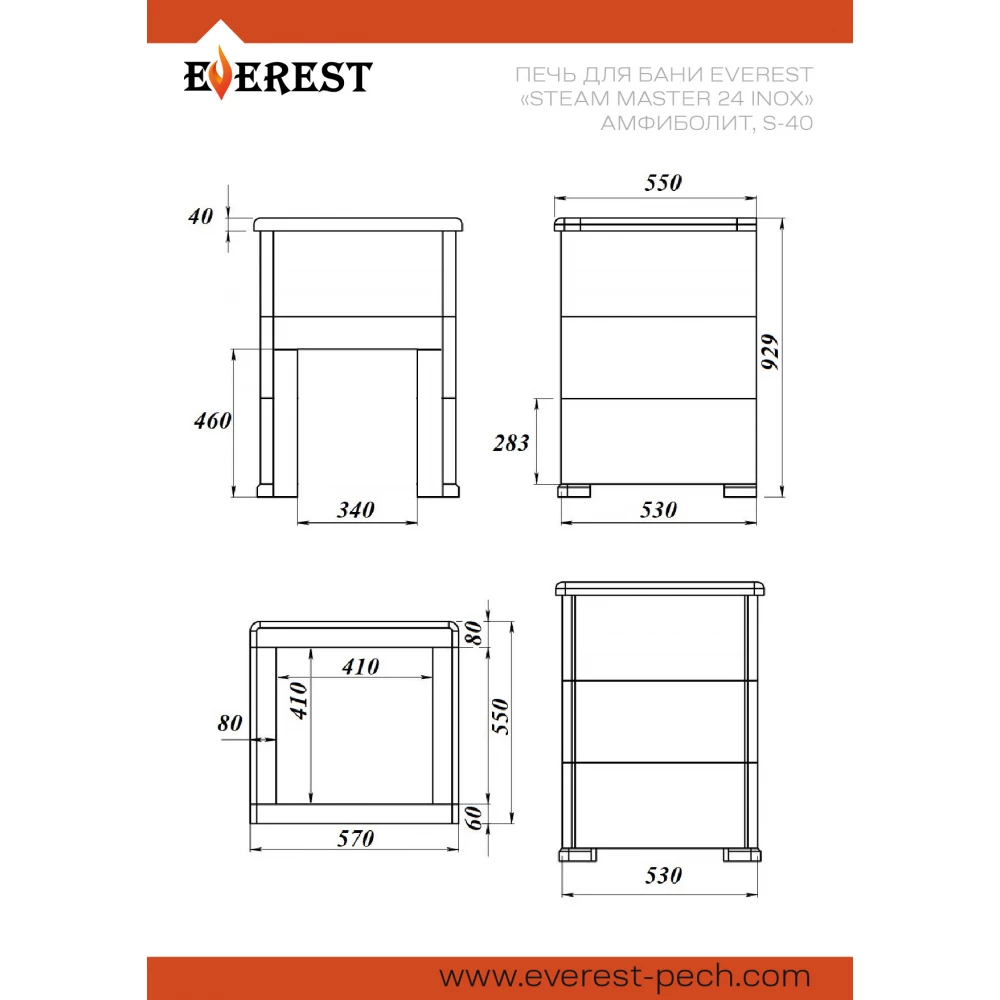 Технические характеристики Печь для бани Эверест "Steam Master 24 INOX" Амфиболит, S-40
