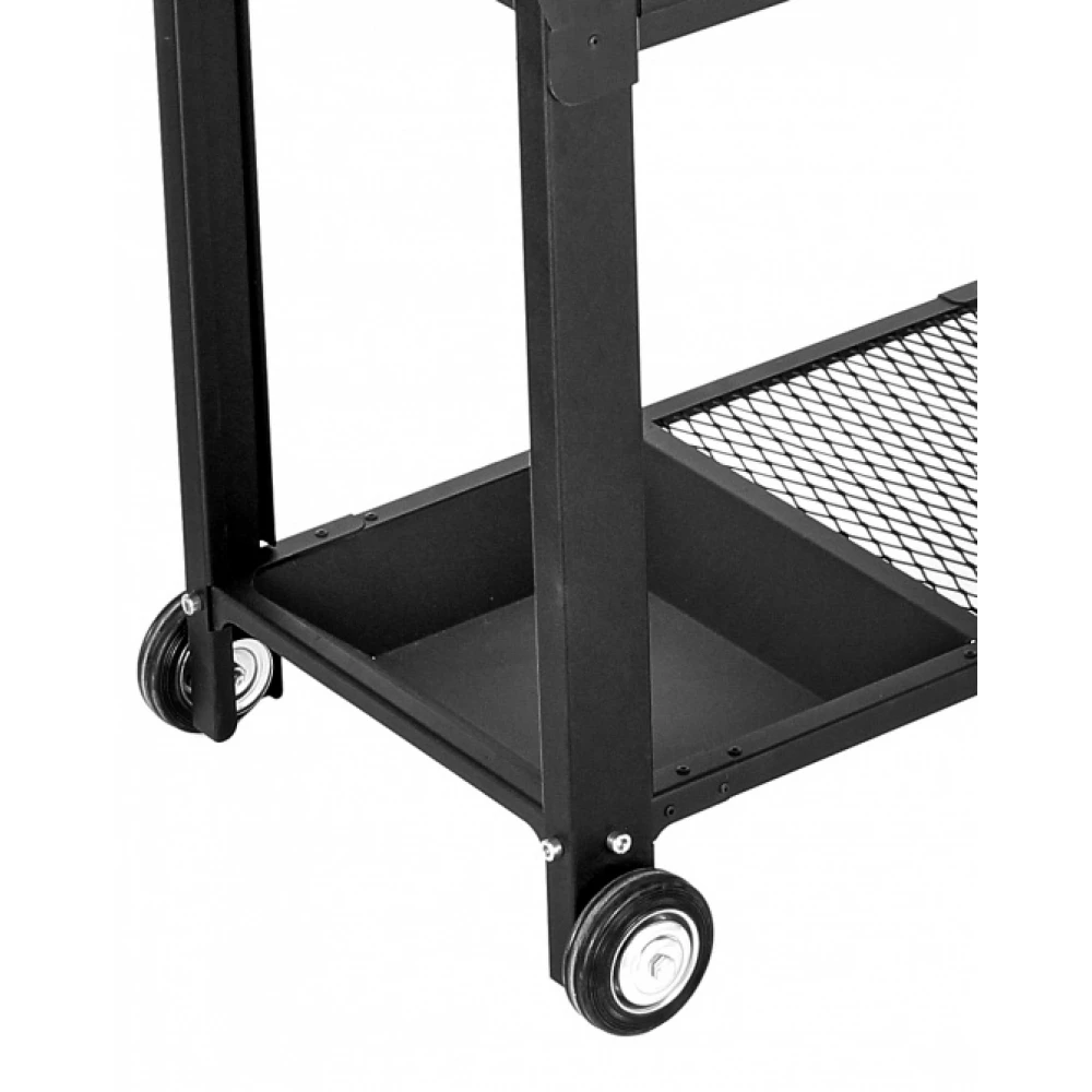- Комплектация: Боковой столик для инструментов, колеса, полка и открывашка для бутылок.