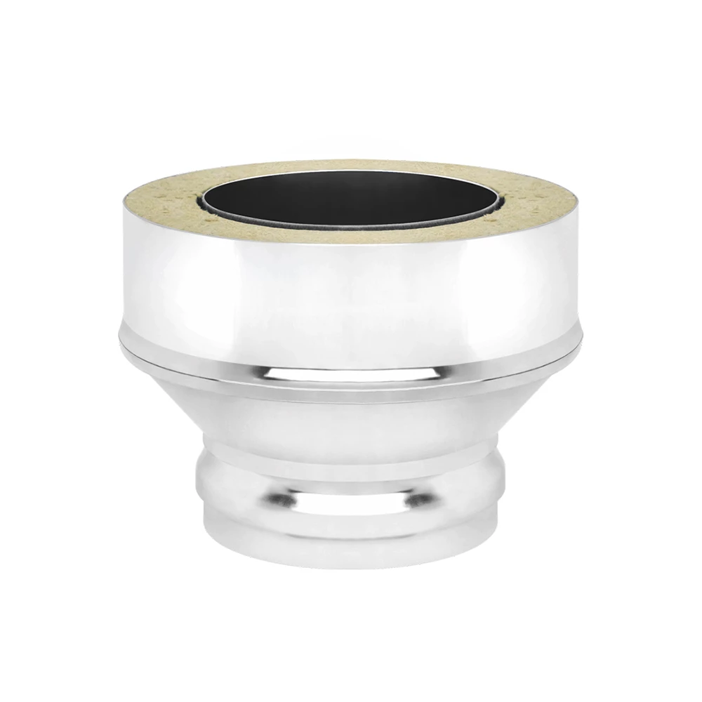 Переходы устанавливается при переходе с неутепленной системы на утепленную (с одноконтурного дымохода на двухконтурный). Элемент дымохода "Переход на сэндвич" изготовлен из нержавеющей стали 0,8 мм и 0,5 мм.